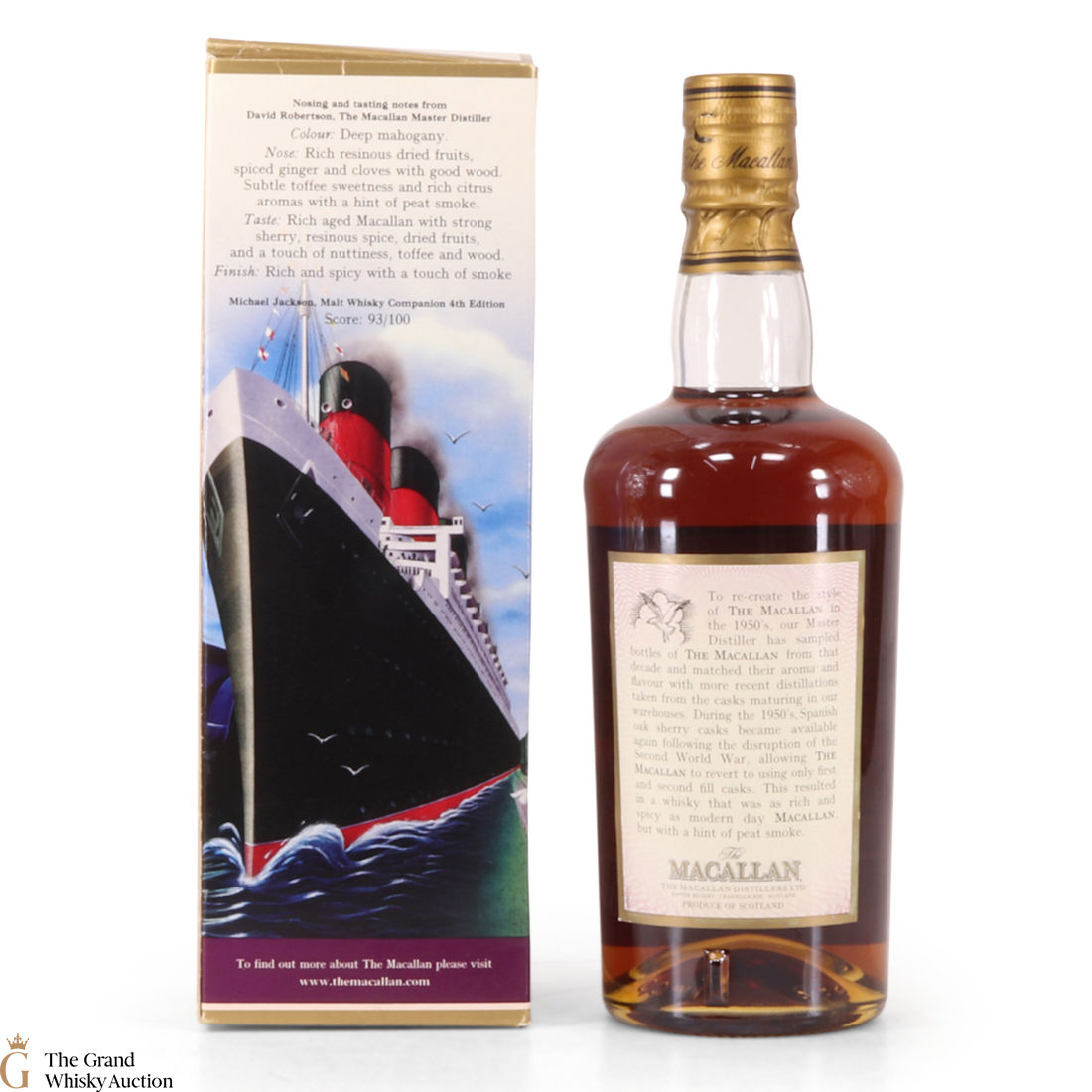 Macallan 1950s: During the 1950s, Macallan whisky was as rich and spicy as modern-day Macallan, but with a hint of peat smoke. This was due to Spanish oak sherry casks becoming available again, following the disruption of the second world war. Macallan was ale to revert to using only first and second fill casks. 50cl, 40%.