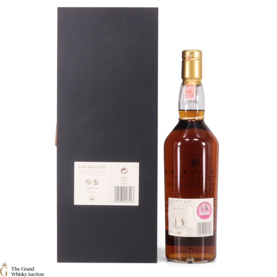 Due to the various ages of bottles and their seals, the condition of liquid is at the buyer's discretion and no claim can be lodged against failure/leakage in transit. Loss and breakage cover is available at 3% of the hammer price as standard. If the lot is not insured, no claim can be lodged against the courier or The Grand Whisky Auction for breakage or loss in transit.
