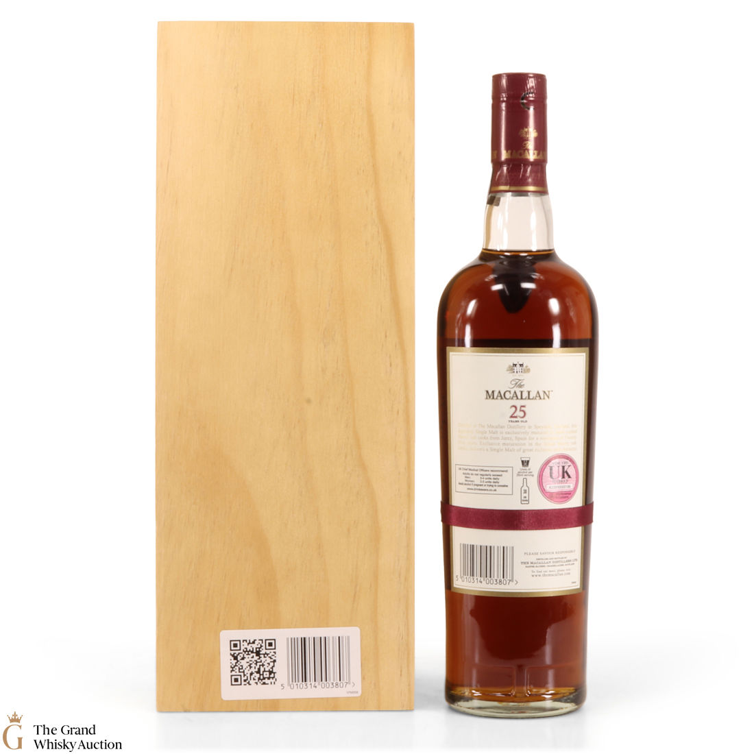 The Macallan 25 Year Old Sherry Oak is a highly collectable bottling. This 25 year old has been matured exclusively in hand-picked, sherry seasoned oak casks from Jerez, Spain. It was bottled at the Whisky Tint of 24!