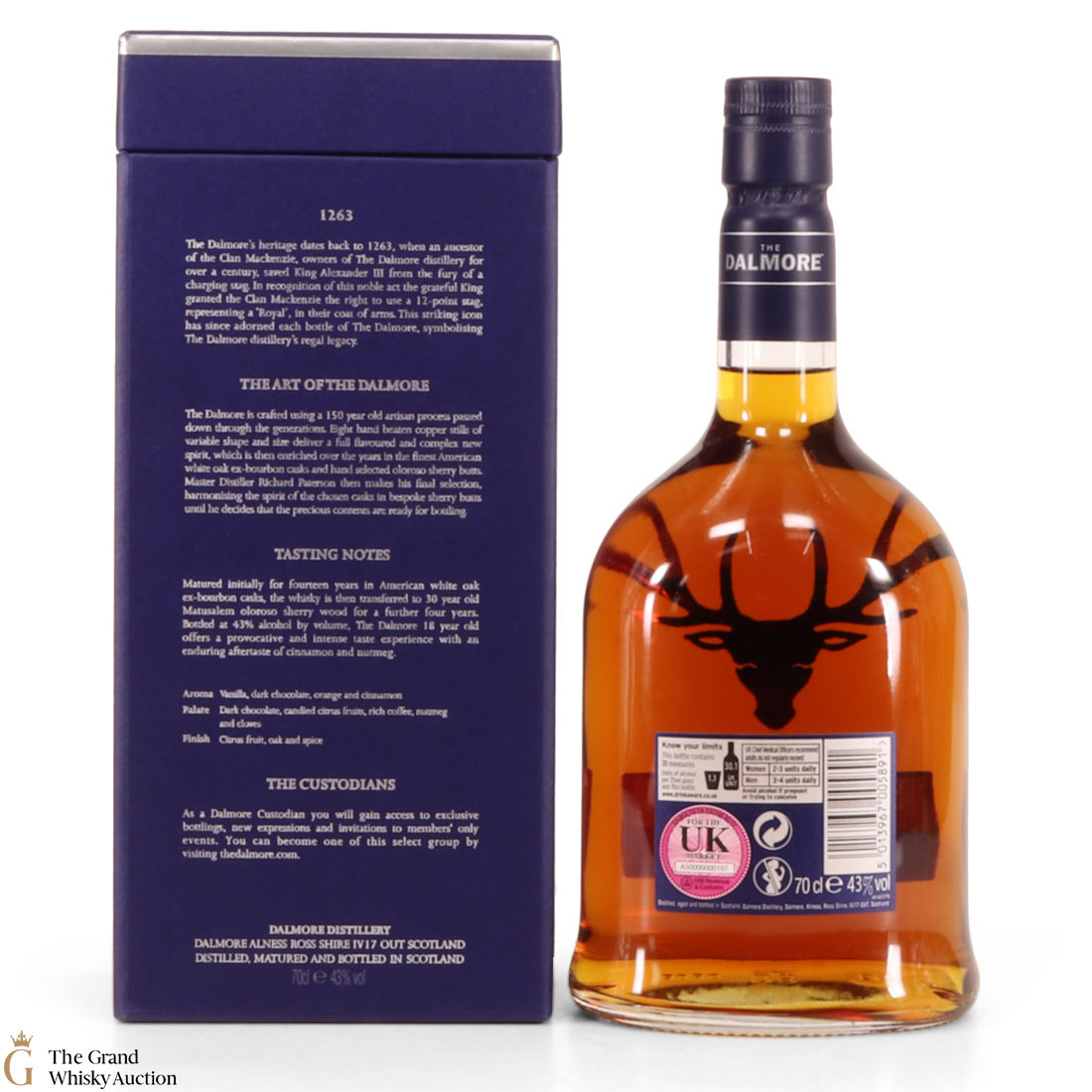 Due to the various ages of bottles and their seals, the condition of liquid is at the buyer's discretion and no claim can be lodged against failure/leakage in transit. Loss and breakage cover is available at 3% of the hammer price as standard. If the lot is not insured, no claim can be lodged against the courier or The Grand Whisky Auction for breakage or loss in transit.