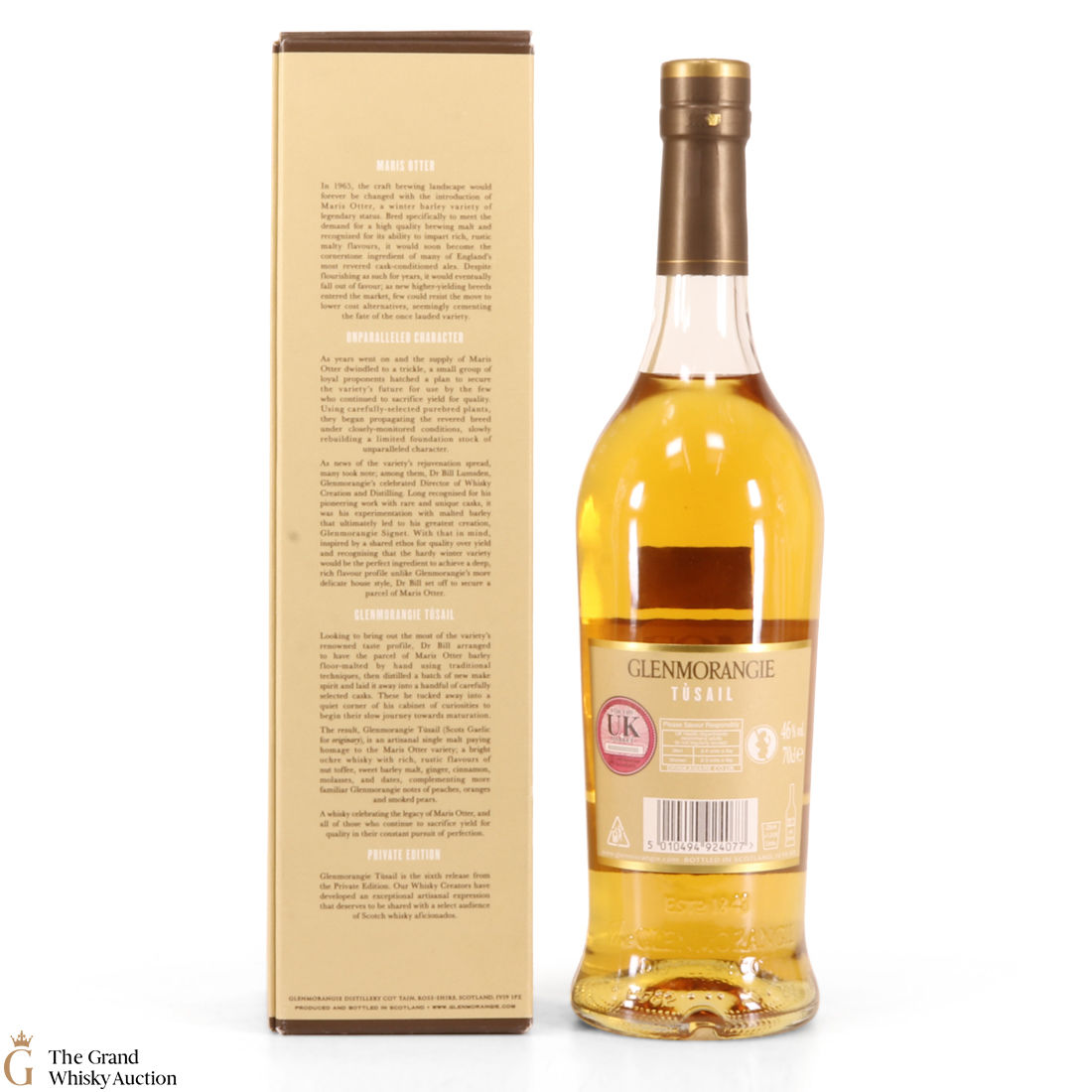 Tusail is the sixth entry in Glenmorangie's Private Collection. Made using traditionally floor-malted Maris Otter barley, this is an old-fashioned whisky backed up by Glenmorangie's modern approach to whisky-making.