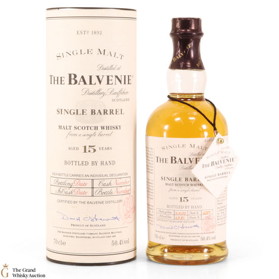 An edition of Balvenie's classic single barrel series, a 15-year-old single malt, drawn from a single traditional oak whisky cask and bottled by hand.