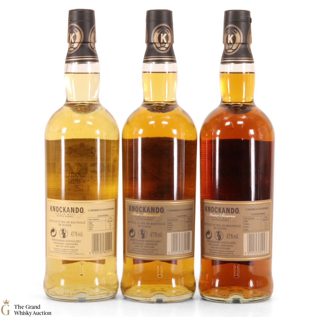 This set includes 3 bottles of Whisky Scotch Single Malt Knockando.