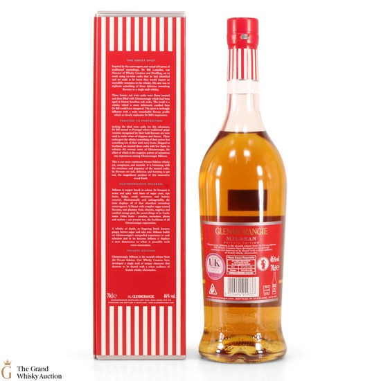 Milsean was the seventh release in Glenmorangie's Private Edition series. It was finished for two-and-a-half years in 154 toasted ex-Portuguese-red-wine barriques. This highland malt is sweet with notes of tropical fruit and lemon sherbet, backed up with some ginger spice.