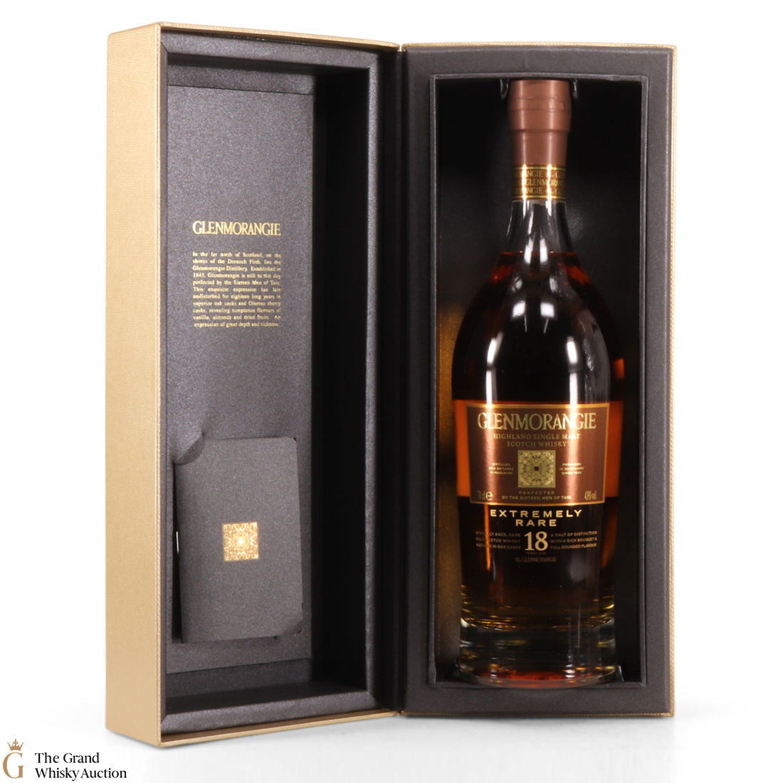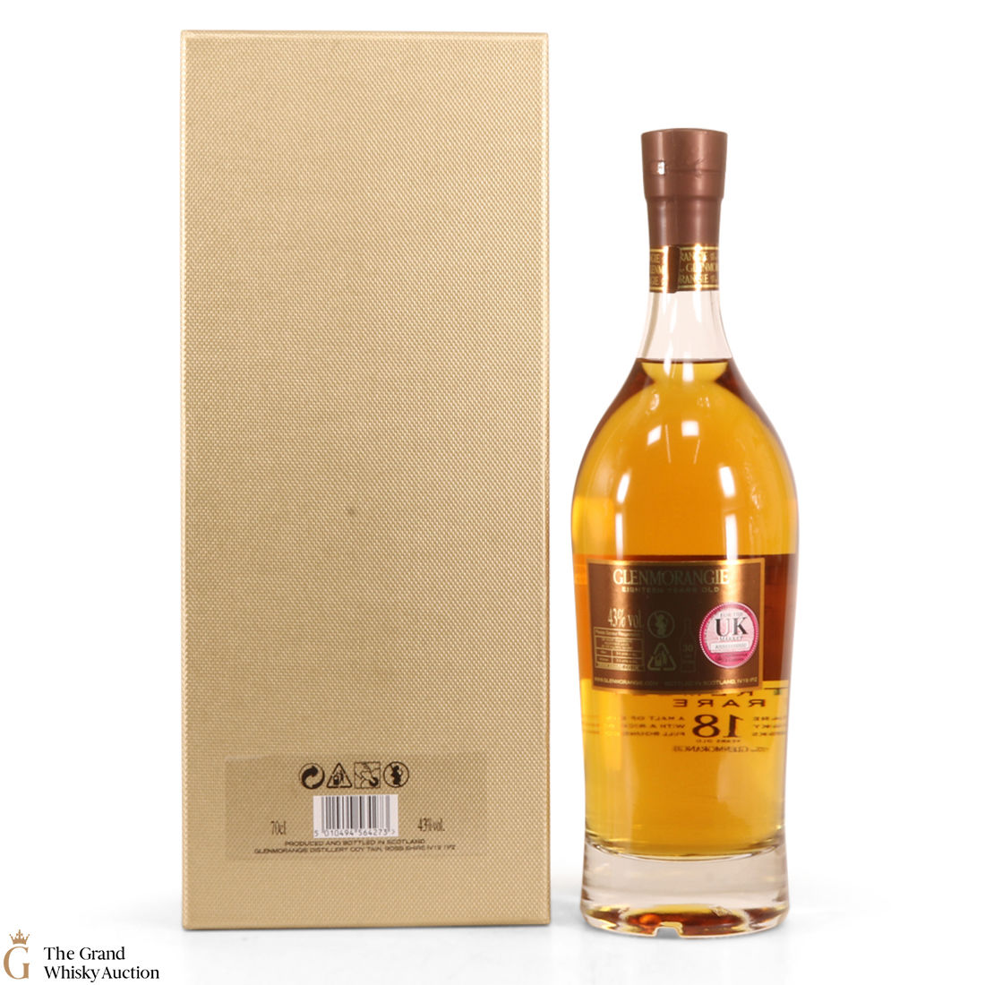 This bottle is an 18 year old Extremely Rare, Highland single malt produced by Glenmorangie. It has been perfected by the sixteen men of Tain who have specially aged this bottle for 18 years in superior oak casks and a period in Oloroso Sherry casks.