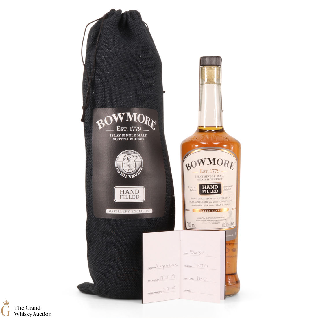 This single cask handfill from Bowmore Distillery. It was distilled in March 2009 and matured in virgin oak cask #1558 until December 2019 when it was bottled at 56.8% abv.