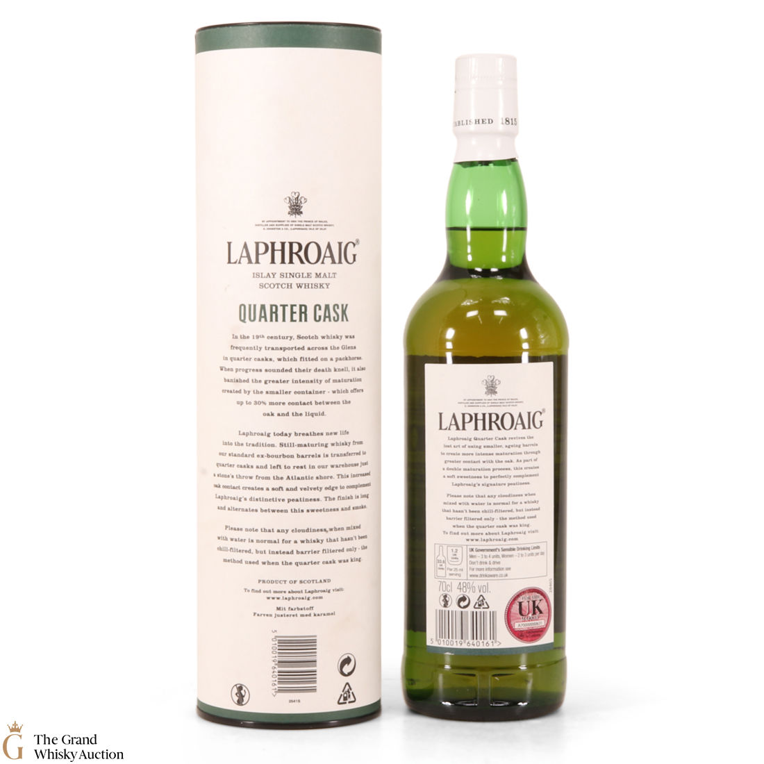 A younger, lively Laphroaig that has had the maturation process speeded up by ageing in quarter casks. As the size of the cask is smaller the maturation doesn't need to be as long. This process has created a soft sweetness and a velvety feel when first tasted, then the intense peatiness so unique to Laphroaig comes bursting through.