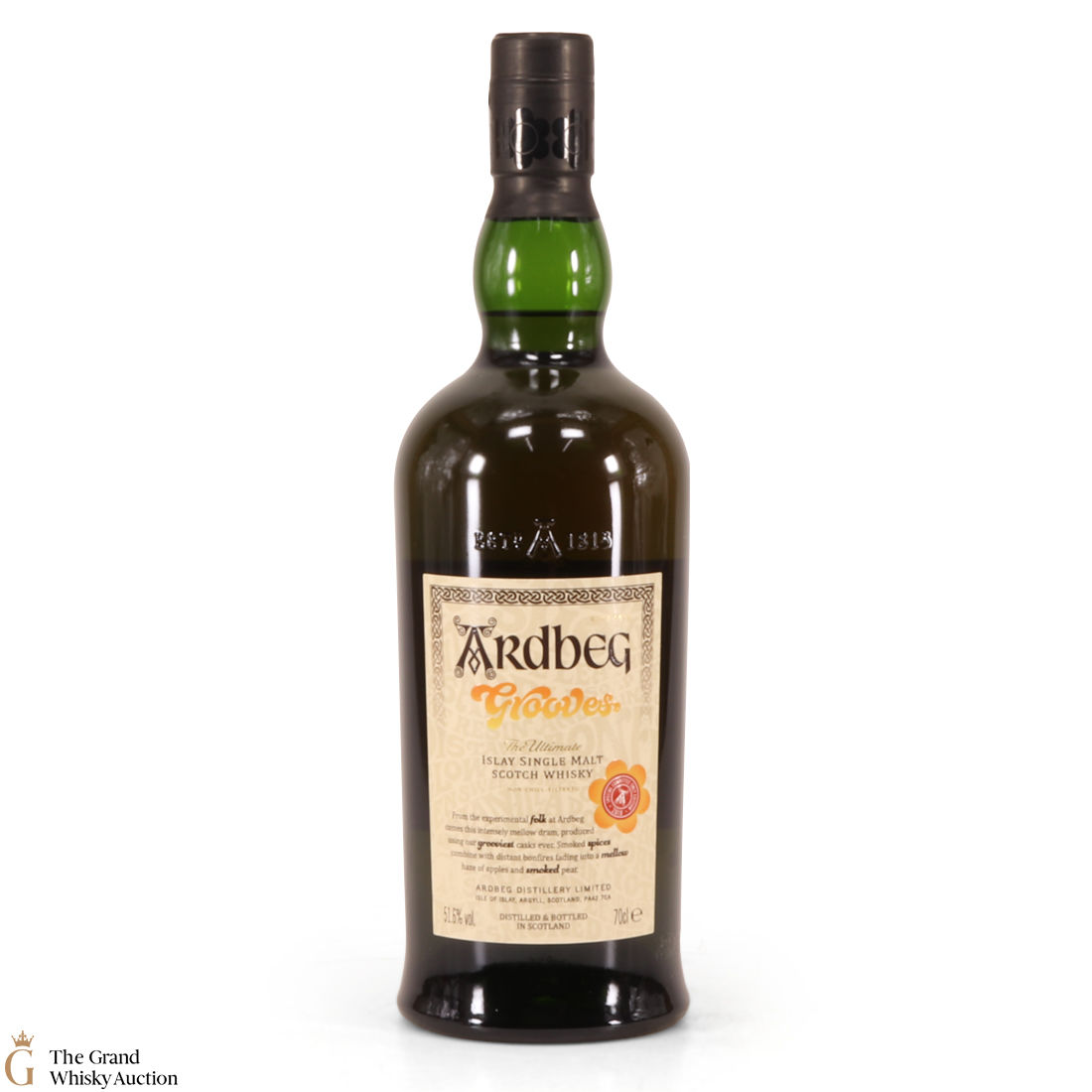 This limited edition Islay single malt was released to mark the 2018 Ardbeg Day at the Islay Festival of Music & Malt. The theme is a throwback to the Island's 1960s spirit, embodying the ideals of 'peat & love'! Ardbeg Grooves is crafted with ex-wine casks that are re-charred to create heavy grooves in the wood, allowing more interaction with the spirit and creating a richer flavour.
