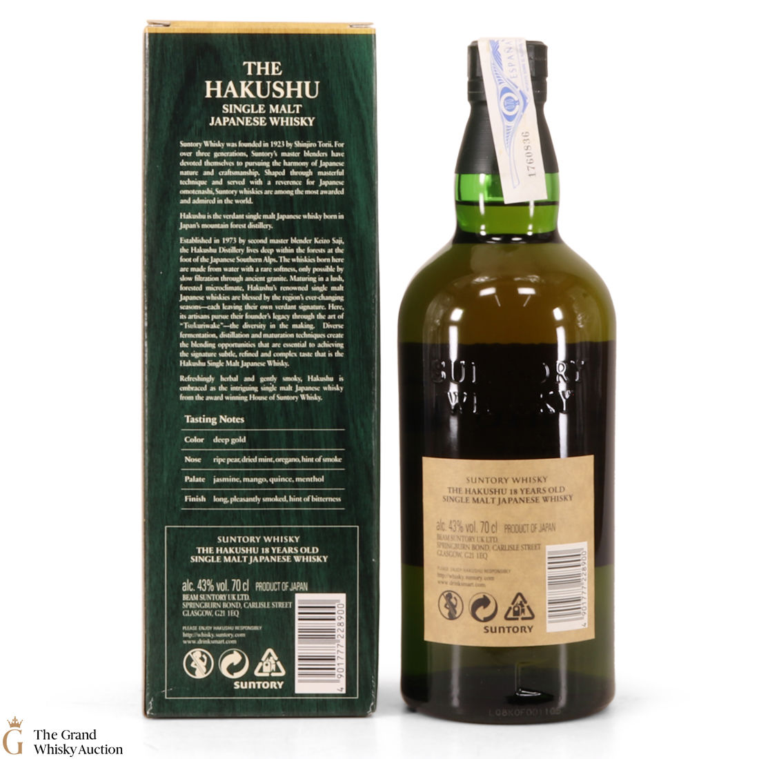 Hakushu 18 Year Old is part of the Suntory group. Not many people know, but at the time of writing this descrpition, Bowmore is part of this conglomerate.