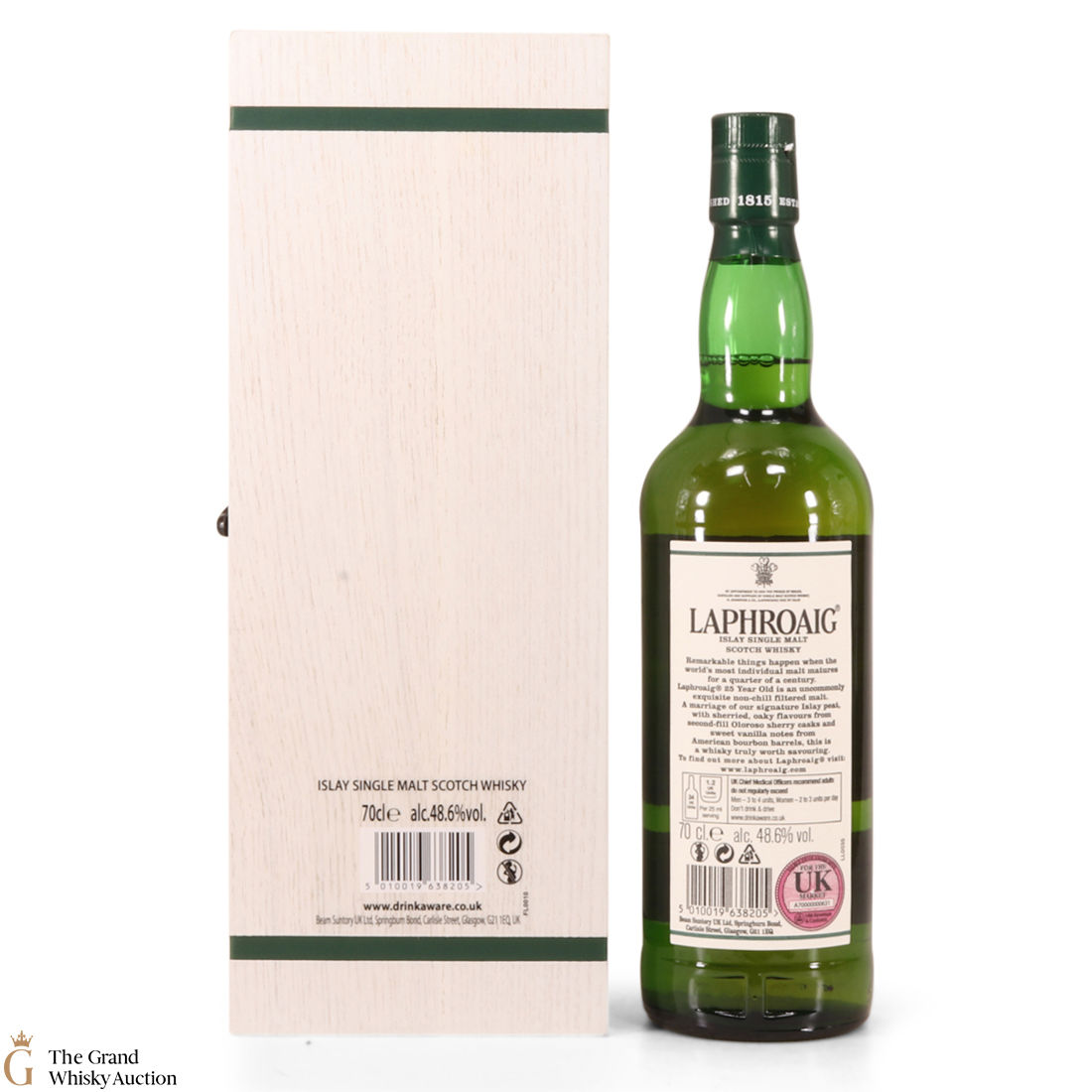 Laphroaig 25 Year Old Cask Strength 2017 Edition is an unlikely combination of whisky that has been aged in second-fill European oak Oloroso sherry casks and American white oak bourbon.