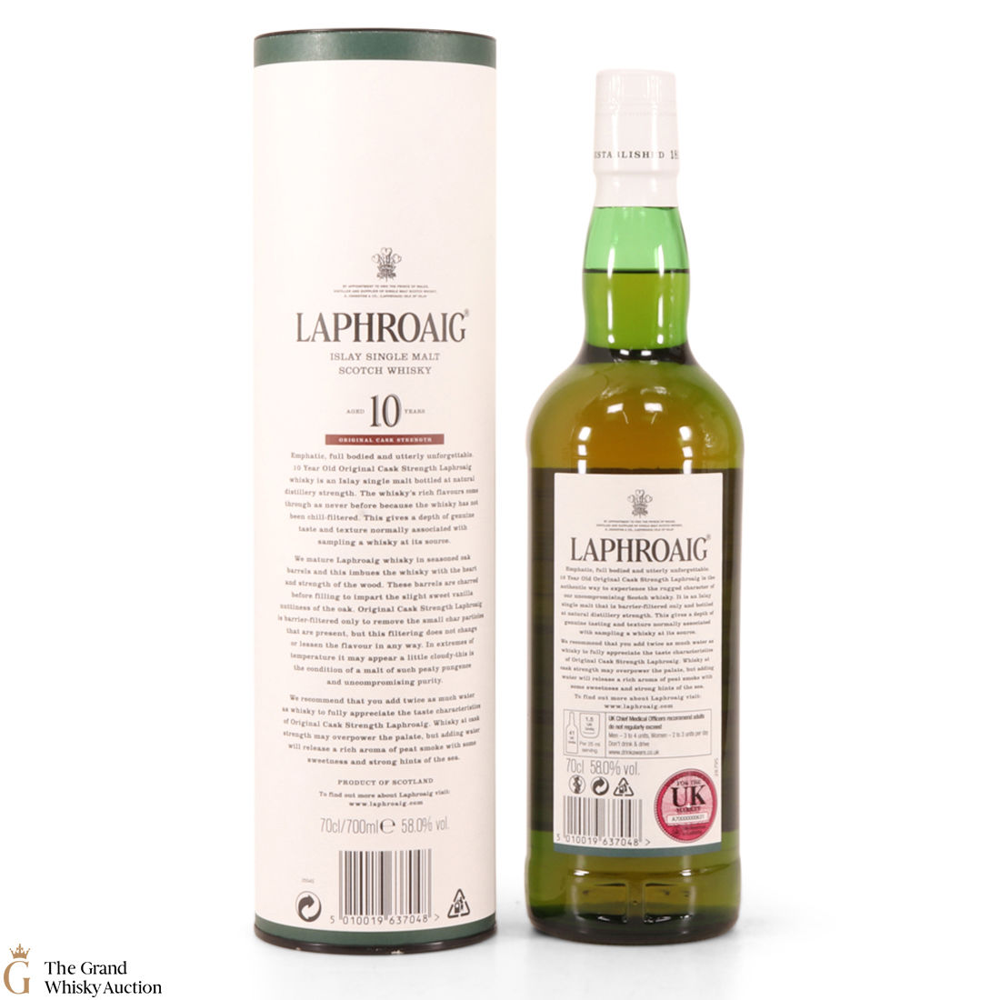 This bottling is from batch 006, original cask strength bottling of the medicinal 10 year old from Islay's bestselling distillery, Laphroaig. In making Laphroaig, malted barley is dried over a peat fire. The smoke from this peat, found only on Islay, gives Laphroaig its particularly rich flavour. This release was bottled at 58.0% in February 2014.