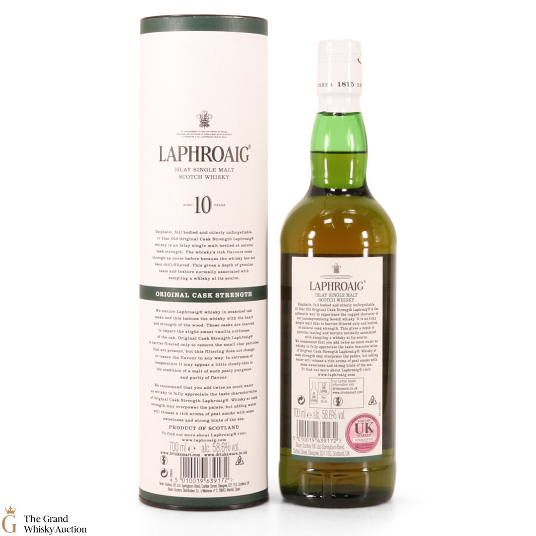 This original cask strength bottling of the medicinal 10 year old from Islay's bestselling distillery, Laphroaig. In making Laphroaig, malted barley is dried over a peat fire. The smoke from this peat, found only on Islay, gives Laphroaig its particularly rich flavour.