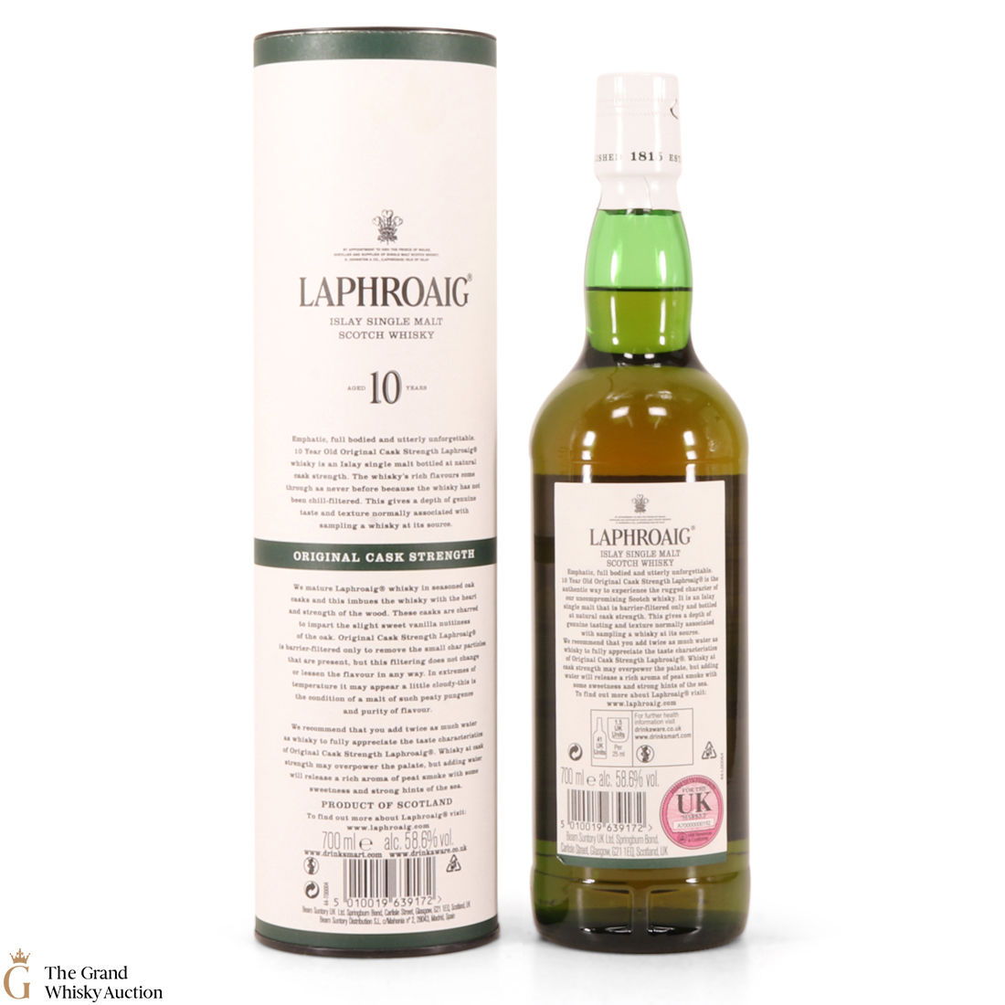 This original cask strength bottling of the medicinal 10 year old from Islay's bestselling distillery, Laphroaig. In making Laphroaig, malted barley is dried over a peat fire. The smoke from this peat, found only on Islay, gives Laphroaig its particularly rich flavour.