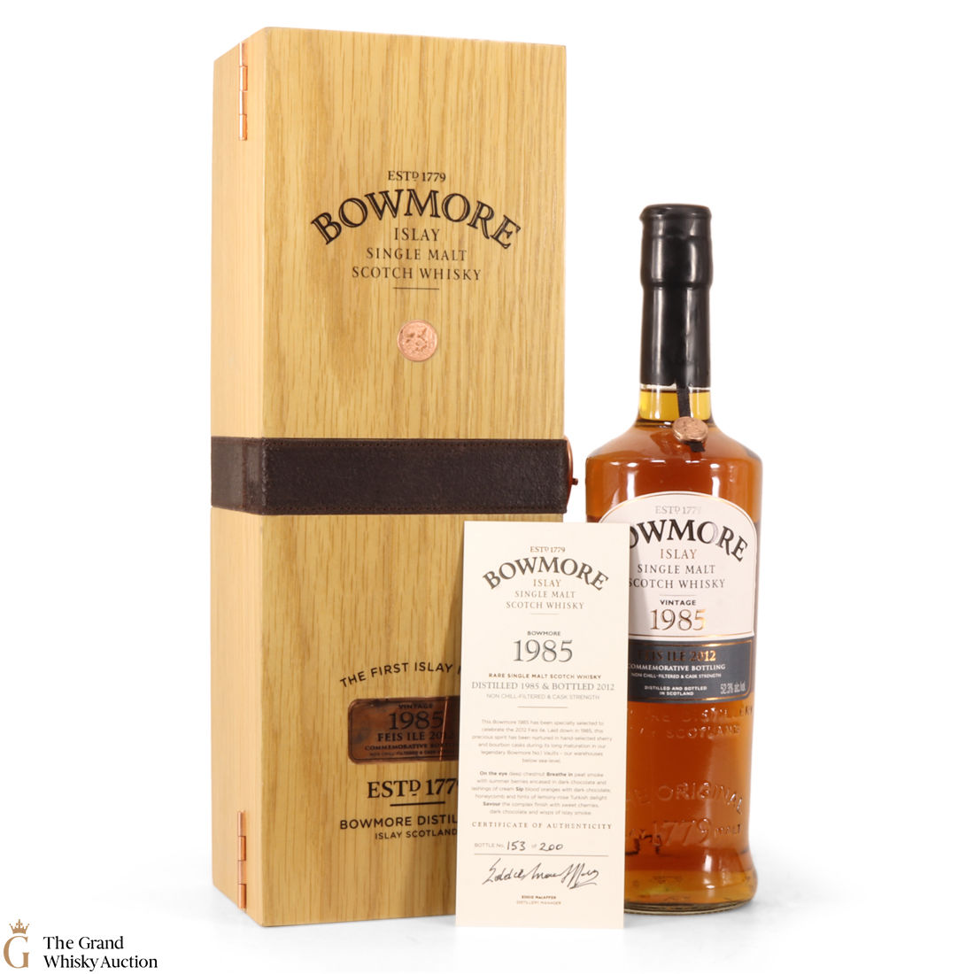 A limited-edition of just 200 bottles from Bowmore, distilled in 1985 and bottled in 2012 for Feis Ile 2012. It comes in a stunning wooden presentation box, this is a rare and collectable bottling.
