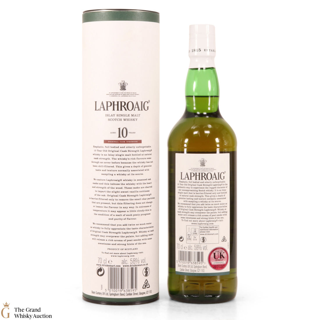 This original cask strength bottling of the medicinal 10 year old from Islay's bestselling distillery, Laphroaig. In making Laphroaig, malted barley is dried over a peat fire. The smoke from this peat, found only on Islay, gives Laphroaig its particularly rich flavour.