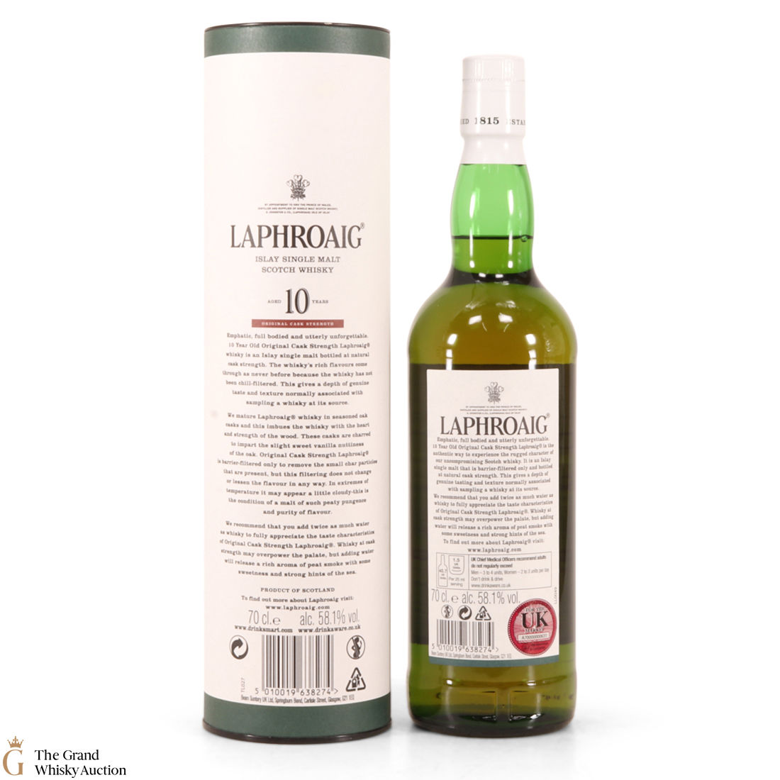 This original cask strength bottling of the medicinal 10 year old from Islay's bestselling distillery, Laphroaig. In making Laphroaig, malted barley is dried over a peat fire. The smoke from this peat, found only on Islay, gives Laphroaig its particularly rich flavour.