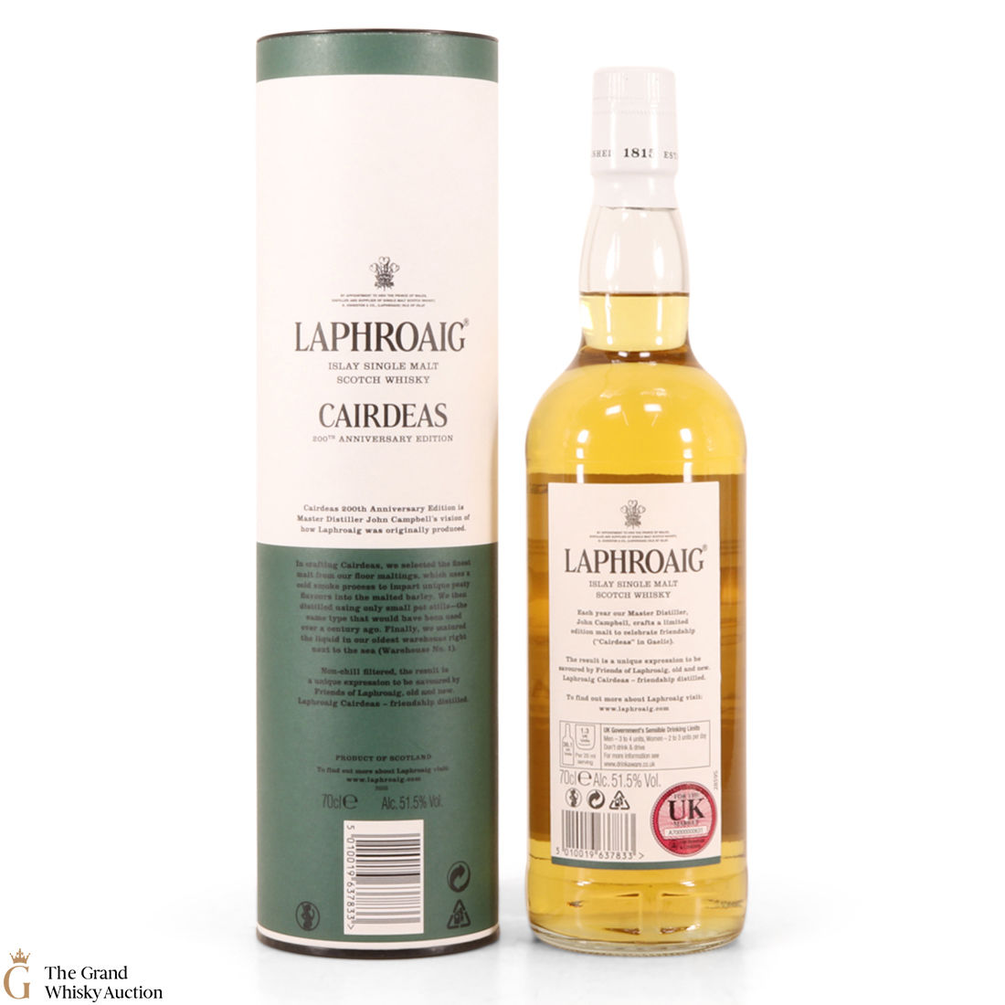 Cairdeas, Gaelic for 'friendship', is an annual bottle release by Laphroaig for their Friends of Laphroaig members. Today, it is the biggest selling single malt from Islay, and one of the last distilleries using its own floor maltings.
