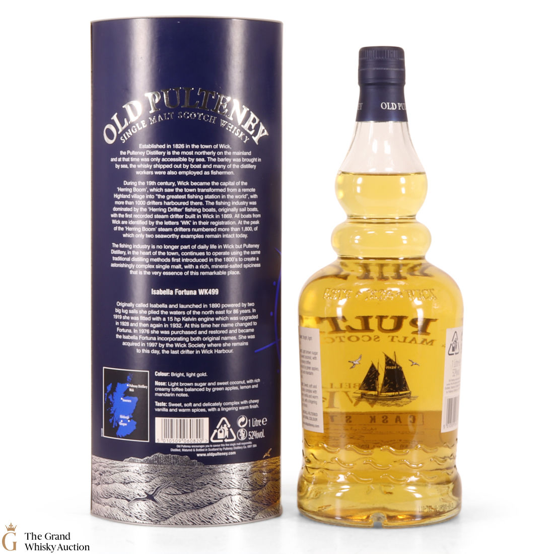 It replaced Old Pulteney's WK209 'Good Hope' Edition, the Isabella Fortuna is the second in this travel retail series. This is the first release bottled at cask strength 52.0%, whereas later bottlings were at 46%.