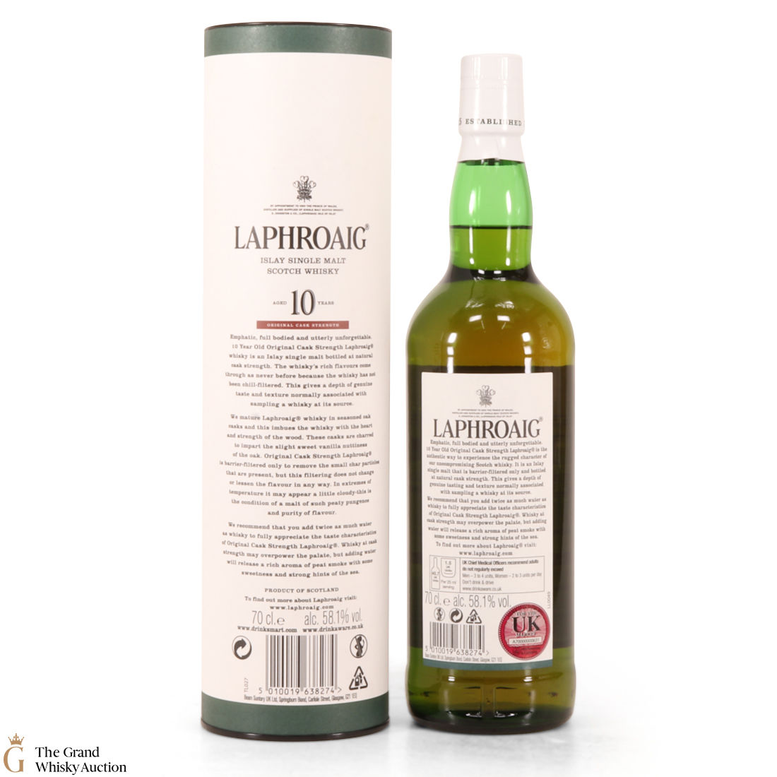 This original cask strength bottling of the medicinal 10 year old from Islay's bestselling distillery, Laphroaig. In making Laphroaig, malted barley is dried over a peat fire. The smoke from this peat, found only on Islay, gives Laphroaig its particularly rich flavour.