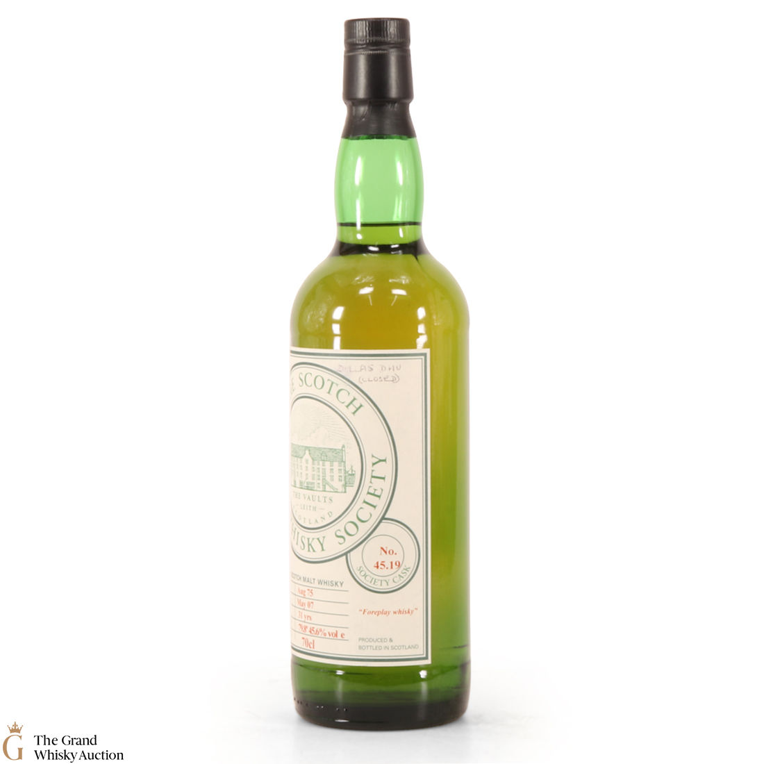 This single cask by the Scotch Malt Whisky Society is a 31-year-old Dallas Dhu. Bottled at the natural cask strength of 45.6% in May 2007. The bottle is said to be 'Foreplay Barbecues'.