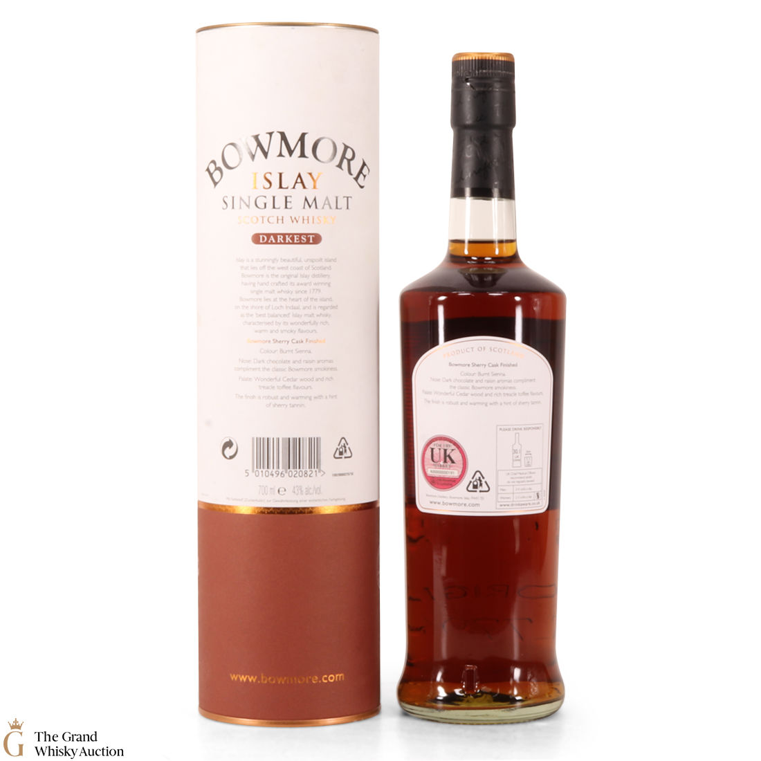 The Bowmore Darkest has been matured in Bourbon casks initially, but the final three years the single malt spent in Oloroso sherry casks gives the whisky its rich, deep colour. This 15 year old was bottled at 43% abv.