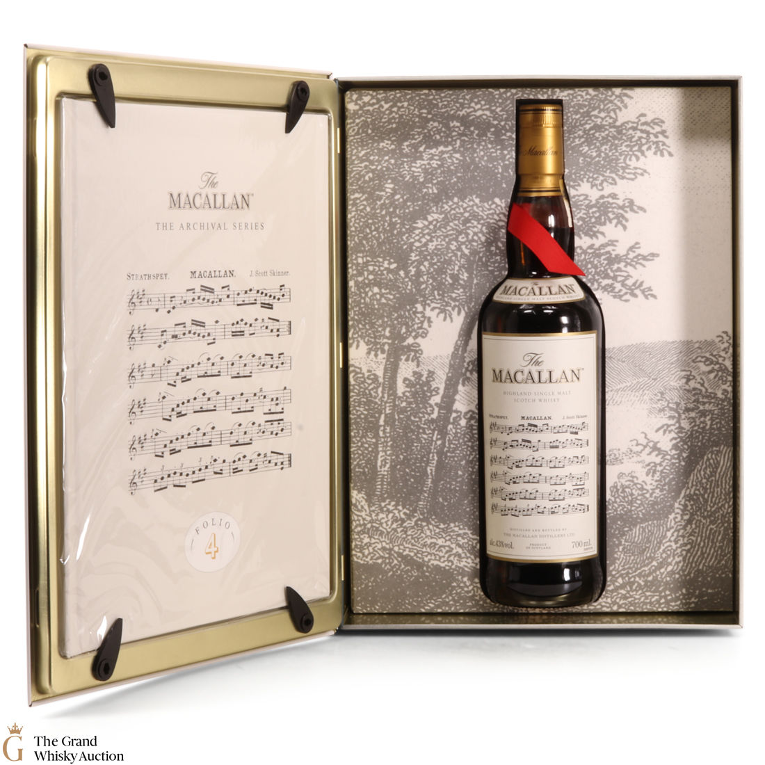 The fourth edition in the Archival Series from The Macallan. Folio 4 remembers the legendary advertising campaigns of the 1970s, 1980s and 1990s that brought The Macallan to the public’s attention outside of Scotland. It is presented in a beautiful book shaped, tin case. It features an advertisement including a Strathspey composed by James Scott Skinner (1843-1927). The advert notes that Skinner was so moved by his favourite malt he created a unique piece of music featuring his signature lilting notes with the simple catchphrase: “The Macallan. The Malt.”