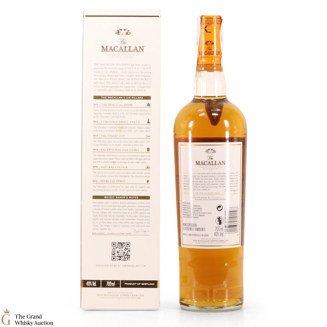 The Macallan 1824 Series celebrates natural colour. The most distinctive and defining characteristic of Macallan is the sherry-seasoned oak casks that are used to mature the whisky. This series shows commitment to 100% natural colour, drawn from wood. The colour of each expression becomes deeper as the range progresses.
