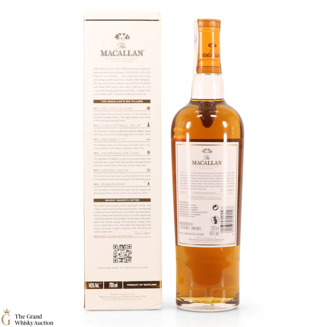 The Macallan 1824 Series celebrates natural colour. The most distinctive and defining characteristic of Macallan is the sherry-seasoned oak casks that are used to mature the whisky. This series shows commitment to 100% natural colour, drawn from wood. The colour of each expression becomes deeper as the range progresses.