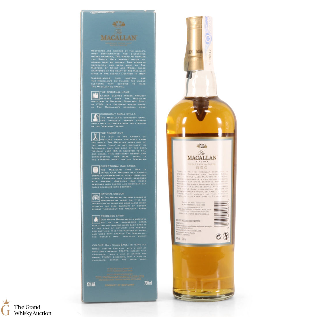 This 15 year old single malt is part of Macallan's Fine Oak, triple cask matured range. It has been matured for fifteen years in three oak cask types; Europen oak seasoned with sherry, American oak seasoned with sherry and American oak seasoned with bourbon. It is 'a rich straw whisky' with notes of cinnamon, rich chocolate and dried fruits. This bottle is an import.