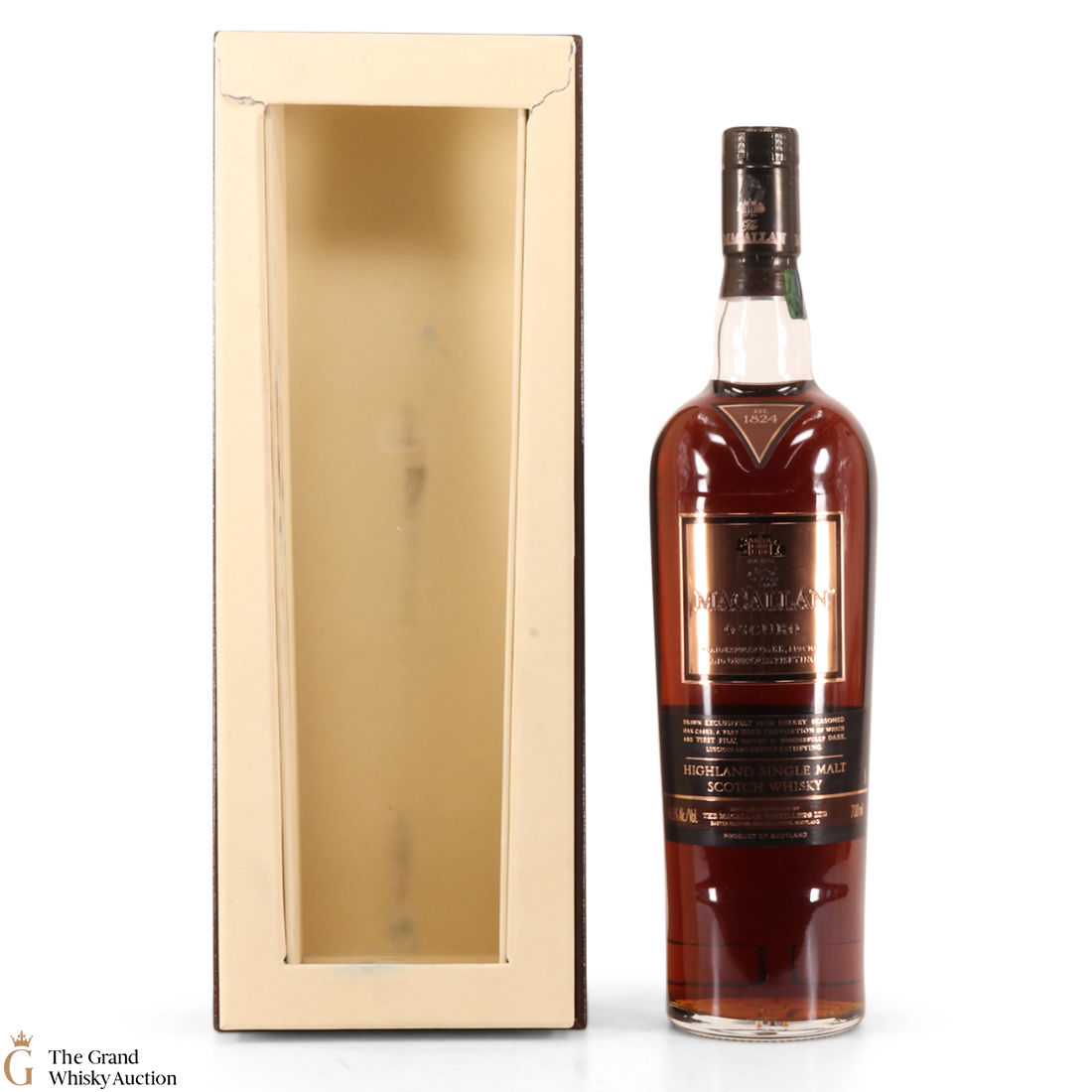 Macallan Oscuro, which is now discontinued is just a sherry lovers dream. It contains whiskies from 1987 to 1997. It was released at the high end of the 1824 series. Other bottles include the Gold, Amber, Sienna and Ruby.