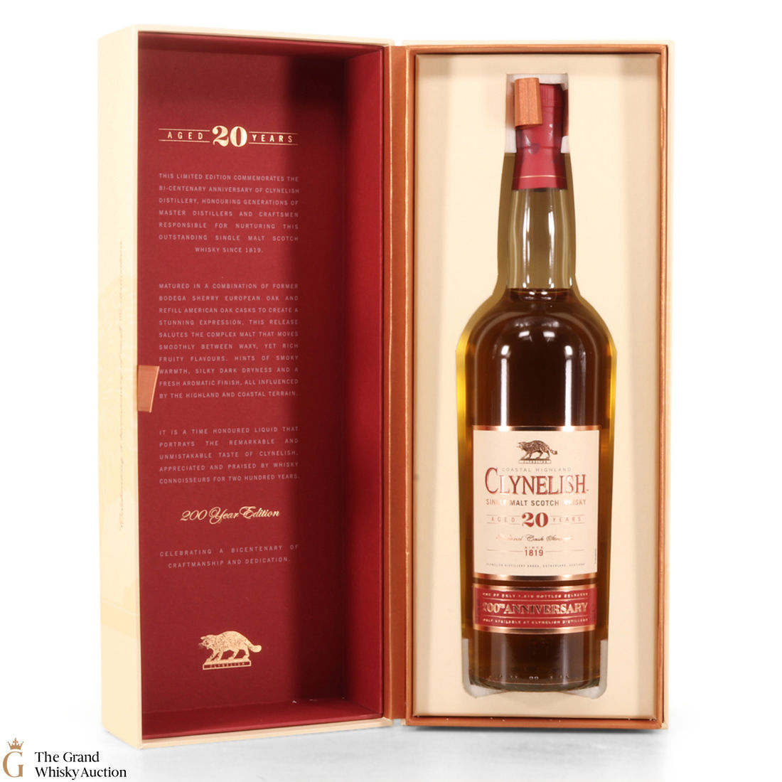Bottled in the highlands, this 20-year-old single malt from Clynelish was bottled to commemorate the distillery's 200th anniversary. In a beautiful presentation box, this cask strength malt was made only available from the distillery in 2019. It was matured in a combination of Bodega Sherry European Oak and Refill American oak casks to create a stunning expression.