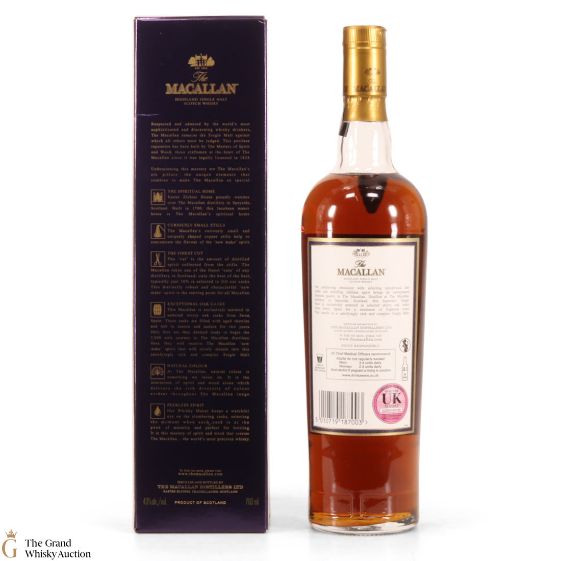 Due to the various ages of bottles and their seals, the condition of liquid is at the buyer's discretion and no claim can be lodged against failure/leakage in transit. Loss and breakage cover is available at 3% of the hammer price as standard. If the lot is not insured, no claim can be lodged against the courier or The Grand Whisky Auction for breakage or loss in transit.