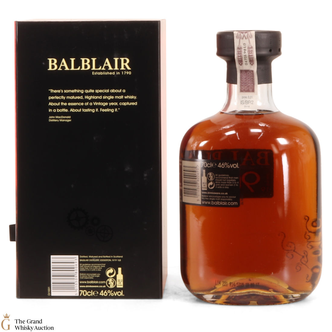 Due to the various ages of bottles and their seals, the condition of liquid is at the buyer's discretion and no claim can be lodged against failure/leakage in transit. Loss and breakage cover is available at 3% of the hammer price as standard. If the lot is not insured, no claim can be lodged against the courier or The Grand Whisky Auction for breakage or loss in transit.
