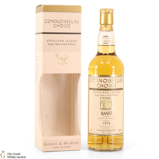 Distilled in October 1976, this 28 year old bottle of Banff whisky was left to mature in refill sherry casks before being bottled by Gordon and MacPhail in 2005 as part of the Connoisseurs Choice range.