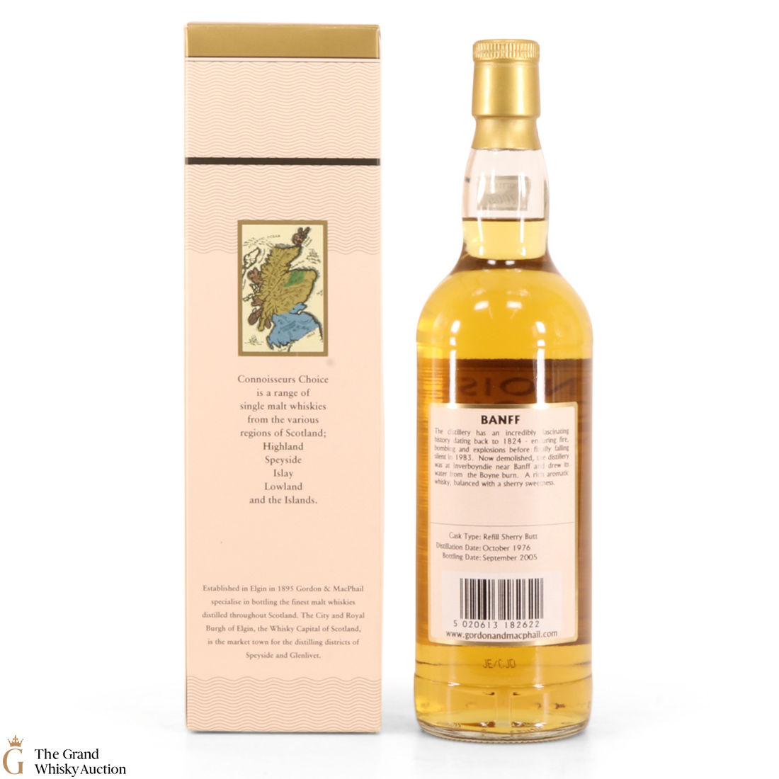 Distilled in October 1976, this 28 year old bottle of Banff whisky was left to mature in refill sherry casks before being bottled by Gordon and MacPhail in 2005 as part of the Connoisseurs Choice range.