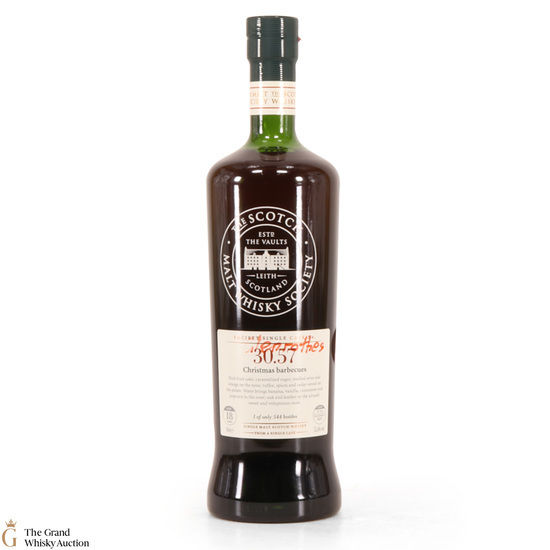 This single cask by the Scotch Malt Whisky Society is a 18-year-old Glenrothes. This is one of just 544 bottles produced. Matured in a First Fill Sherry Butt and bottled at the natural cask strength of 55.6%. The bottle is said to be like 'Christmas Barbecues'.