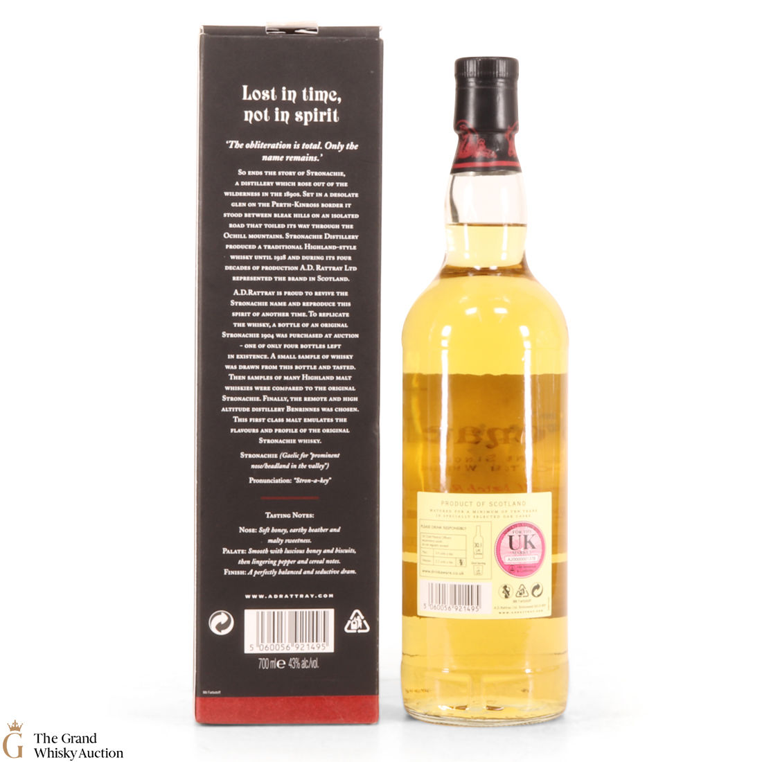 Decades after the Stronachie Distillery closed, a small sample of whisky was drawn from an older bottle, tasted and compared to samples from other Highland malt whiskies. Like the original, Benrinnes is located in a remote, high altitude wilderness. The new make spirit is matured in ex-bourbon or sherry casks before bottling in small batches as 10-year-old Stronachie Single Malt.