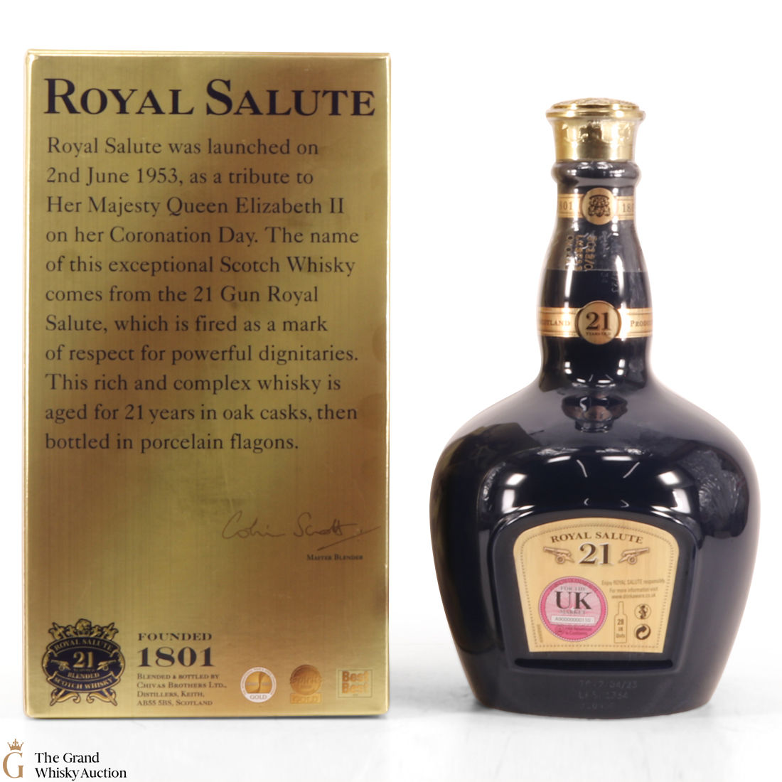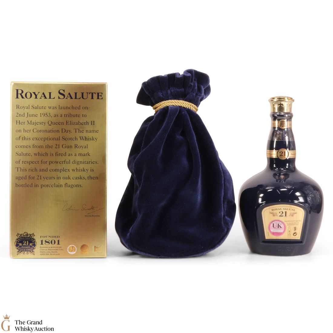 This is a special Sapphire-coloured edition of Chivas' Royal Salute 21 Year Old blended whisky from the Chivas Royal Salute Range.