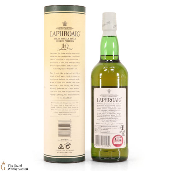 A 70cl of the medicinal 10 year old from Islay's bestselling distillery, Laphroaig. In making Laphroaig, malted barley is dried over a peat fire. The smoke from this peat, found only on Islay, gives Laphroaig its particularly rich flavour.