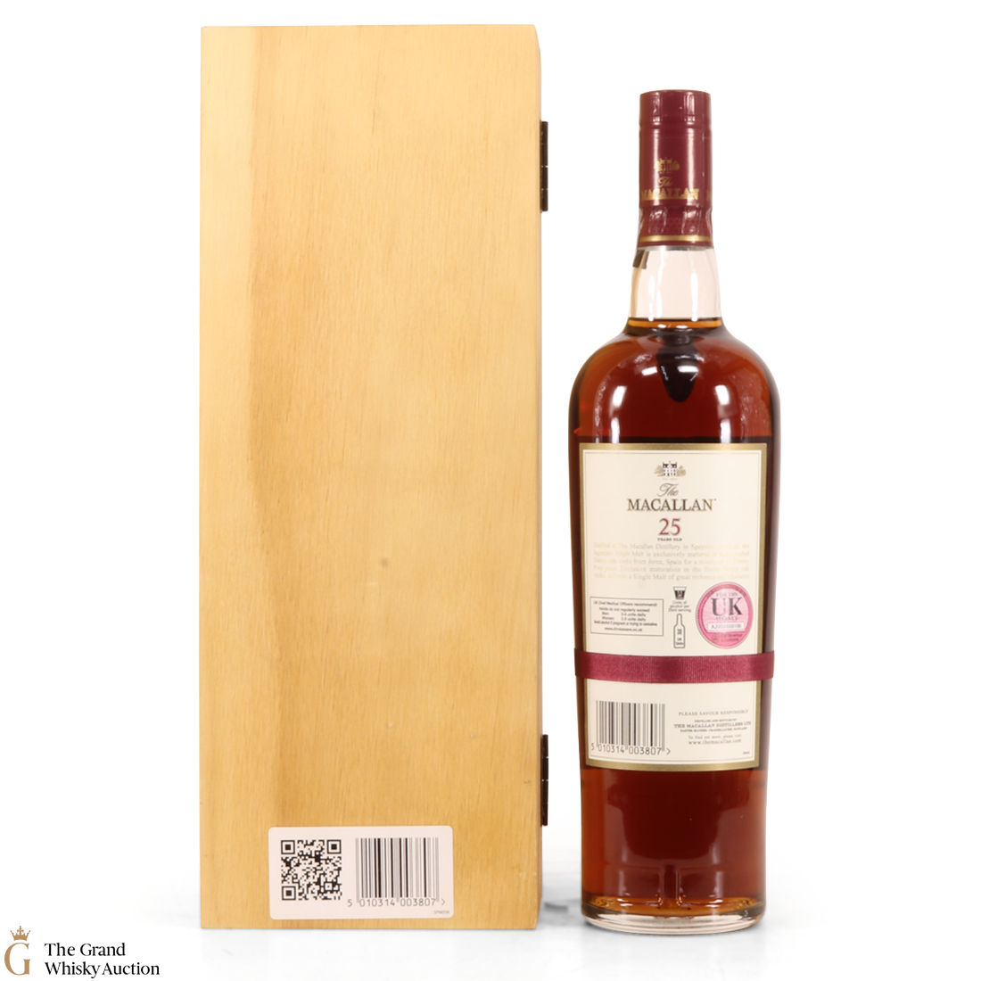 The Macallan 25 Year Old Sherry Oak is a highly collectable bottling. This 25 year old has been matured exclusively in hand-picked, sherry seasoned oak casks from Jerez, Spain. It was bottled at the Whisky Tint of 24!