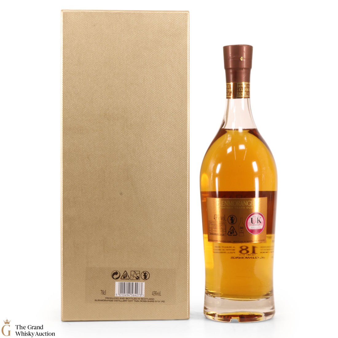 This bottle is an 18 year old Extremely Rare, Highland single malt produced by Glenmorangie. It has been perfected by the sixteen men of Tain who have specially aged this bottle for 18 years in superior oak casks and a period in Oloroso Sherry casks.
