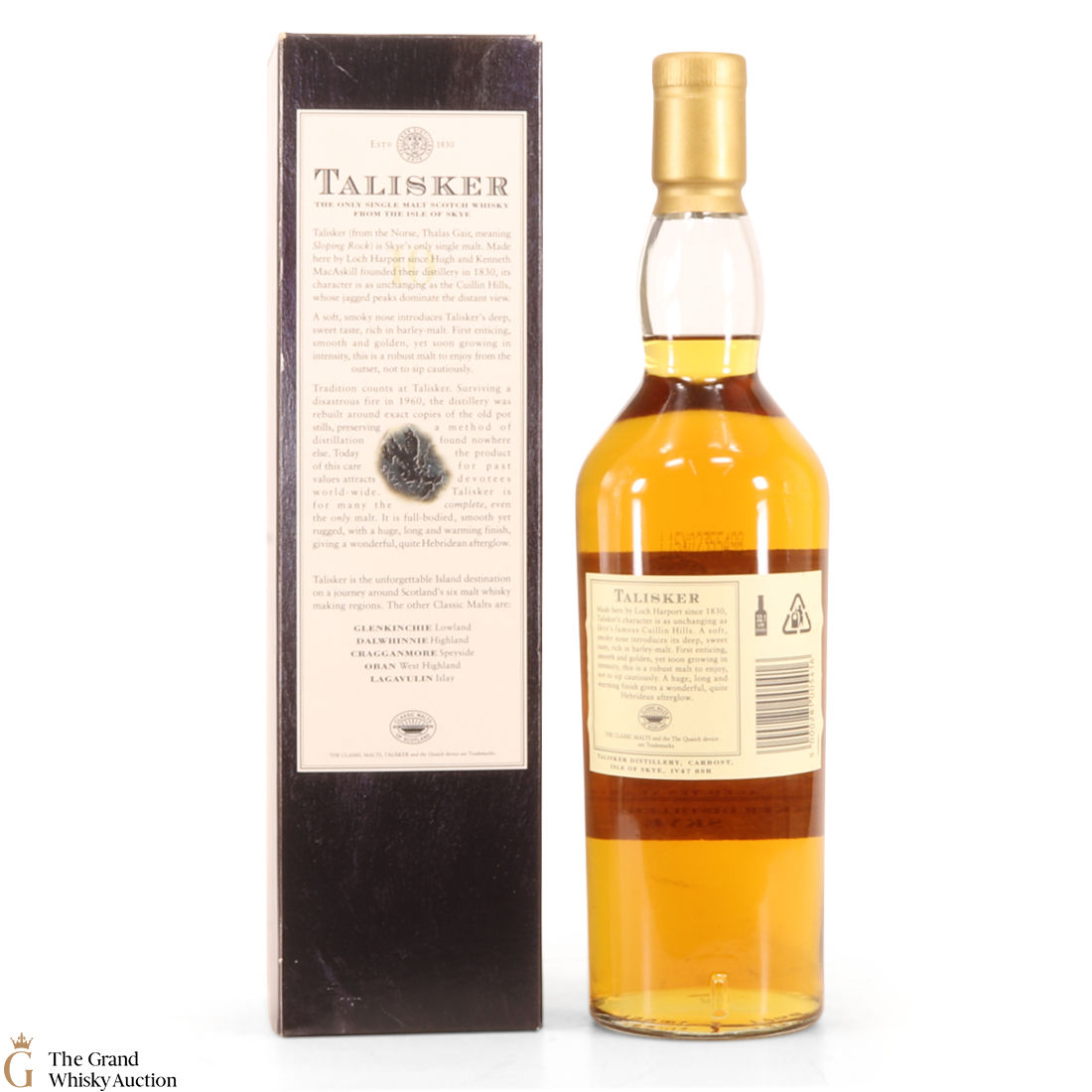 From the Isle of Skye Talisker 10 Year Old from the 1990s.This older style of the packaging features the Isle of Skye mapped on a stone.