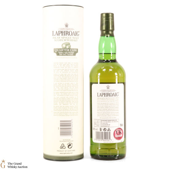 A younger, lively Laphroaig that has had the maturation process speeded up by ageing in quarter casks. As the size of the cask is smaller the maturation doesn't need to be as long. This process has created a soft sweetness and a velvety feel when first tasted, then the intense peatiness so unique to Laphroaig comes bursting through.