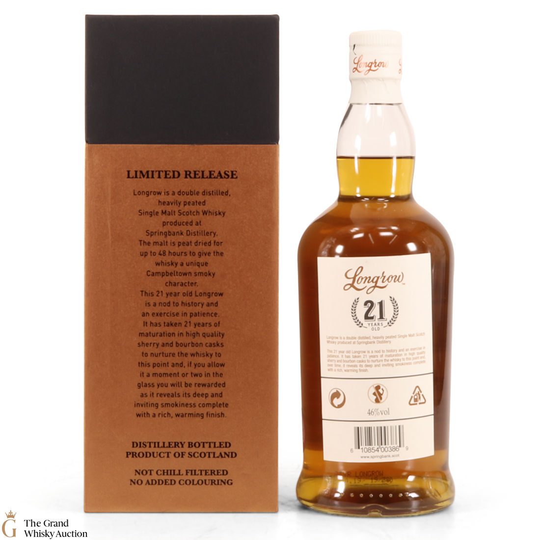This 21-year-old Longrow, is a limited edition from Springbank Distillery in Campbeltown. This is one of only 3,600 bottles produced after maturation in sherry and bourbon casks.