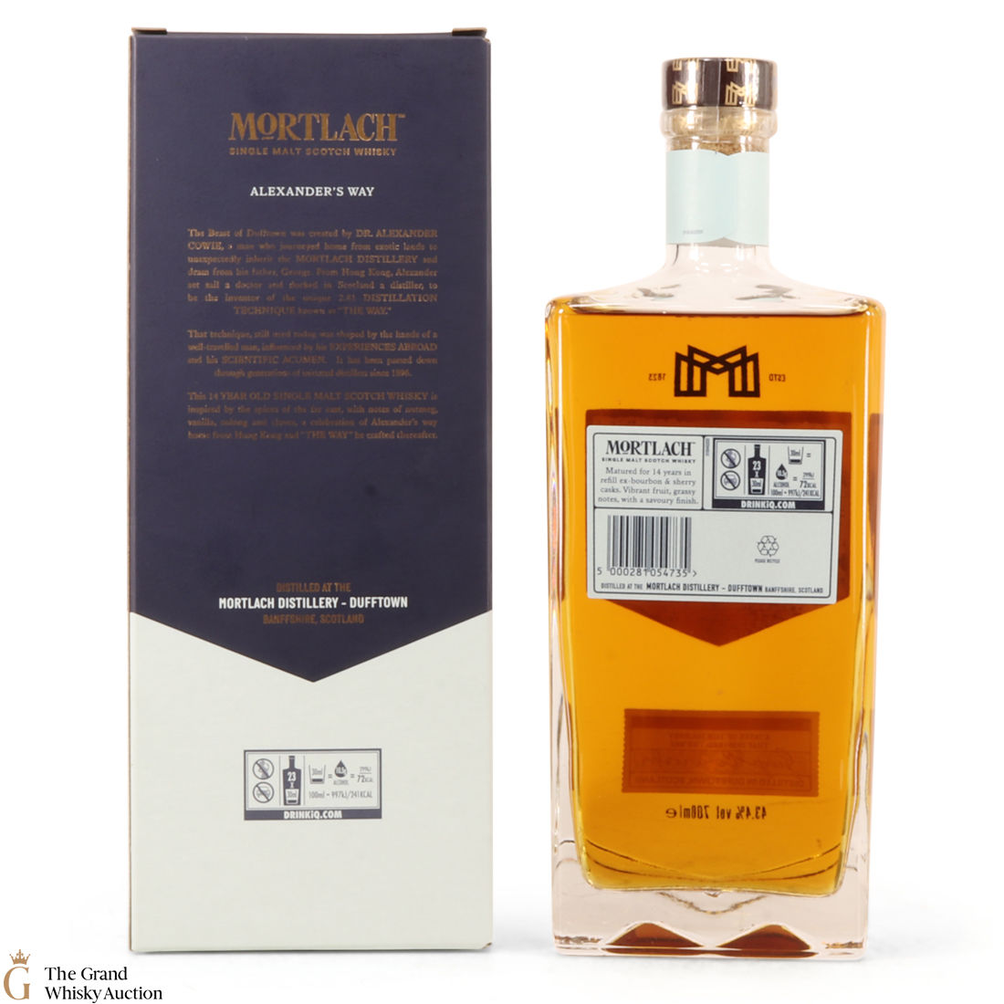 Released as a travel retail exclusive, this Mortlach 14 Year Old was nicknamed Alexander's Way in honour of Alexander Cowie, the former Distillery Owner. Mortlach distils its spirit 2.81 times, this technique was introduced by Alander and is known as ‘The Way’.