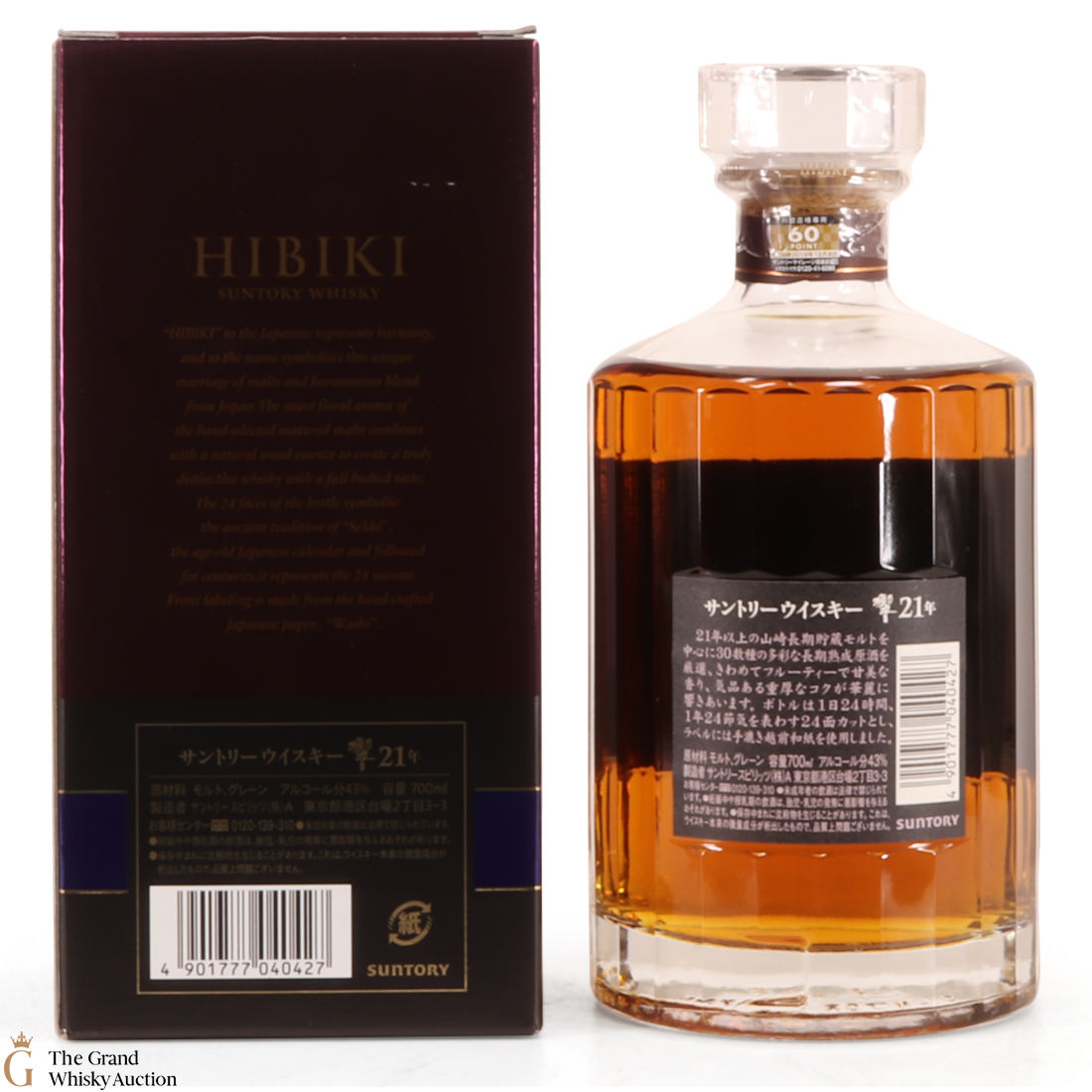 Hibiki 21 Year Old is a very popular blended whisky from Suntory. It is made up of a blend of specially selected mature malt and grain whiskies aged over 21 years. The key Yamazaki sherry casked malt is vatted with other carefully chosen mellow unblended grain whiskies over 21 years old.