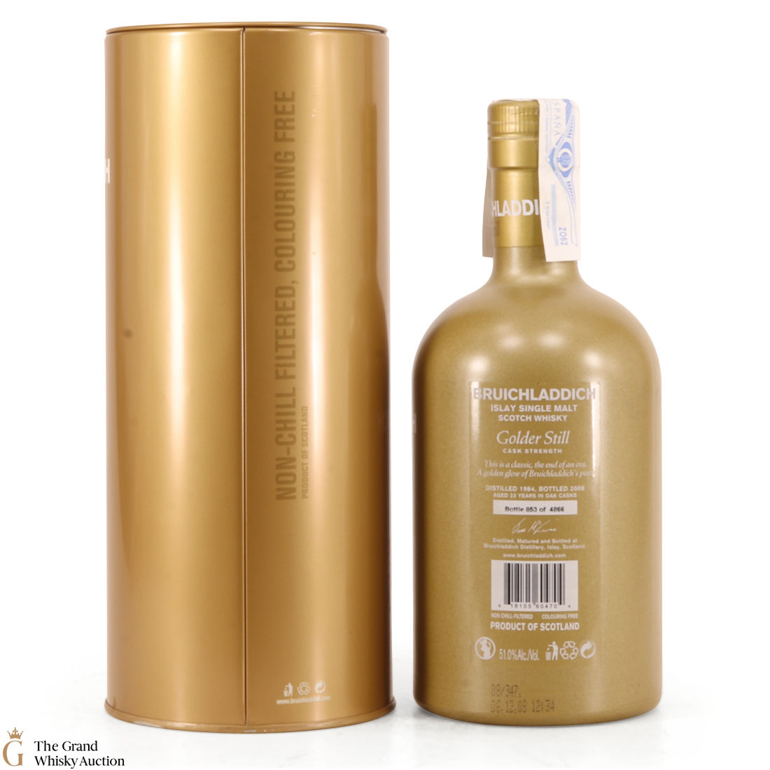 Golder Still is a rare, limited edition released at 23 years old by Bruichladdich. This release was said to be a bit of an experiment having been matured in dumpy, smaller casks made like American cooperages had done so briefly in the 80s. with the smaller bourbon casks will give additional contact with the wood. It was bottled at the cask strength.