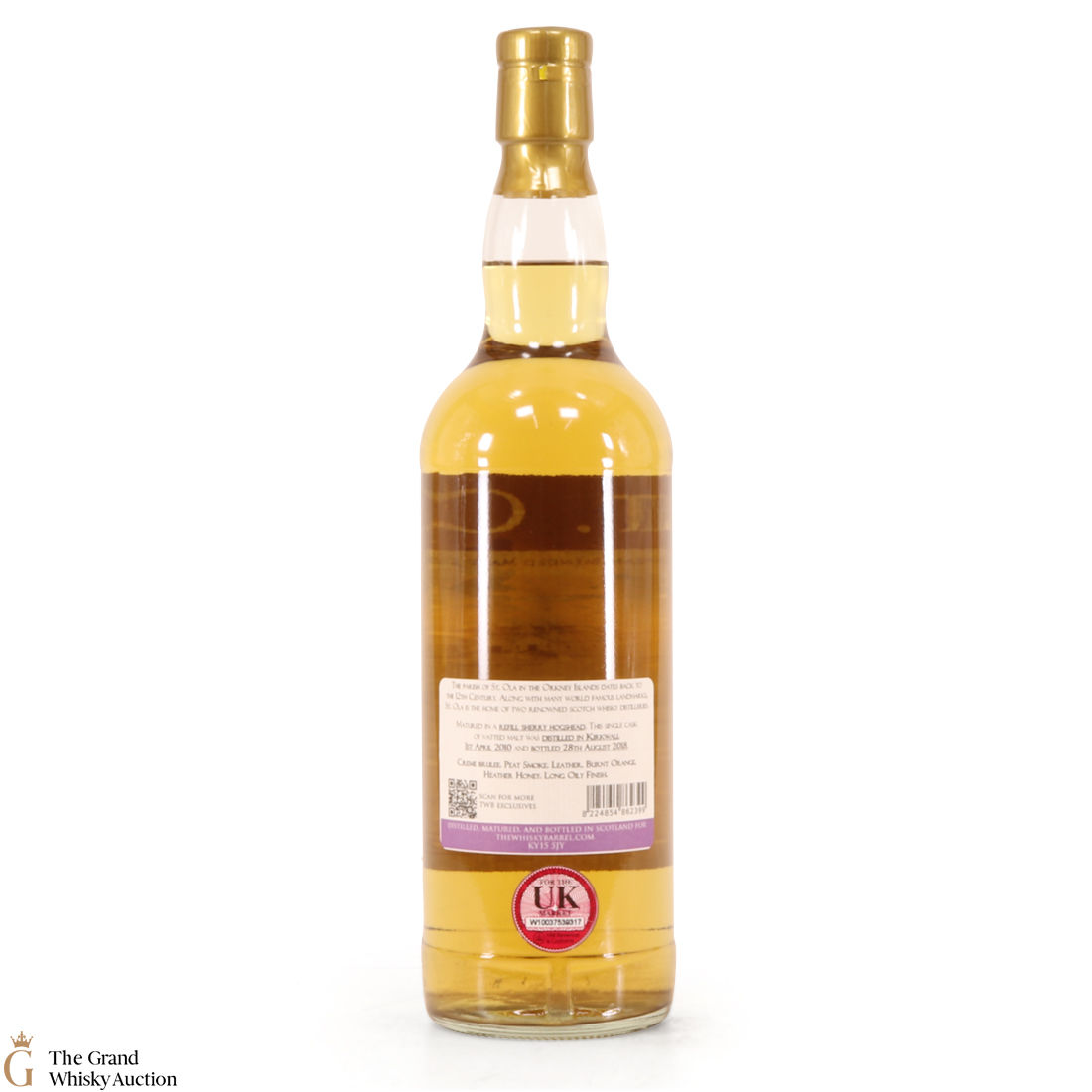 This blended Orcadian malt was matured in a refill sherry hogshead, this single cask of vatted malt was distilled in Kirkwall 1st April 2010 and bottled 28th August 2018 for The Whisky Barrel Ltd.