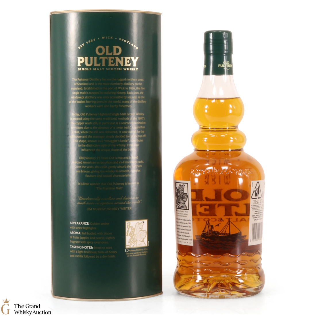 Old Pultney is known as the Maritime Malt due to the distillery location at the very North of Scotland and this is honoured with the unique shape of the bottle.