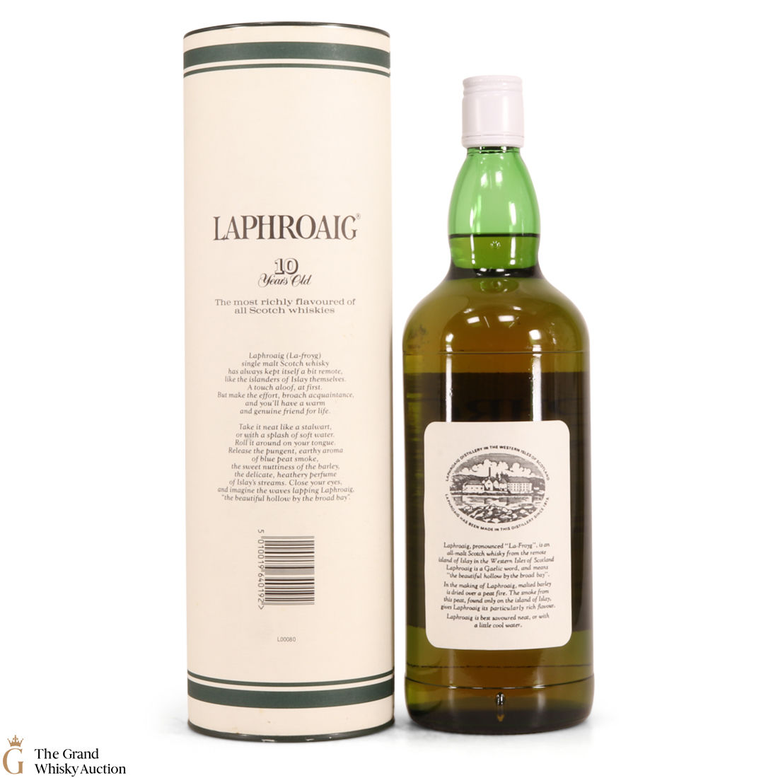 A 1.14L bottling of the medicinal 10-year-old from Islay's bestselling distillery, Laphroaig. In making Laphroaig, malted barley is dried over a peat fire. The smoke from this peat, found only on Islay, gives Laphroaig its particularly rich flavour.